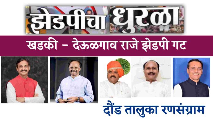 दौंड तालुका : दौंड तालुक्यातील खडकी देऊळगाव राजे गटात तीन दिग्गज आपले नशीब आजमावणार असल्याने या गटात काटे की टक्कर पहायला मिळणार आहे. हा संपूर्ण गट आता दोन गट अर्धे अर्धे विभागून एकत्र करण्यात आला आहे त्यामुळे या ठिकाणी आमदार राहुल कुल, माजी आमदार रमेश थोरात, जिल्हा परिषद सदस्य विरधवल जगदाळे, आप्पासाहेब पवार आणि वासुदेव काळे यांची चांगली पकड असणारा गट बनला आहे.