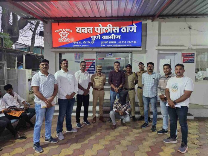 यादी क्रमांक 1709/25 नुसार गु.र.नं.1) 382/2024 BNS 305,331. यवत गु.र.नं. 2) 468/2024 BNS 305,331, यवत गु.र.नं. 3) 816/2024 BNS 305,331 यवत गु.र.नं 4)1050/2024 BNS 305,331. यवत गु.र.नं 5)1139/2024 BNS 305,331. यवत गु.र.नं 6)1253/2024 BNS 305,331. यवत गु.र.नं 7)1255/2024 BNS305,331. यवत गु.र.नं 8)24/2025 BNS 331(1) 305 यवत गु.र.नं 9) 39/2025 BNS 331(1)305 यवत गु.र.नं 10) 48/2025 BNS 331(1) 305 . यवत गु.र.नं 11) 1162/2024. BNS 331(1),305. यवत गु. र. नं 12) 760 /2024 BNS 331(1),305 मध्ये फरार असल्याचे कळताच त्याचेवर योग्य ती खात्री करून त्याची वैद्यकीय तपासणी करून पुढील कार्यवाही करीत यवत पोलिस स्टेशन यांच्या ताब्यात देण्यात आले आहे.