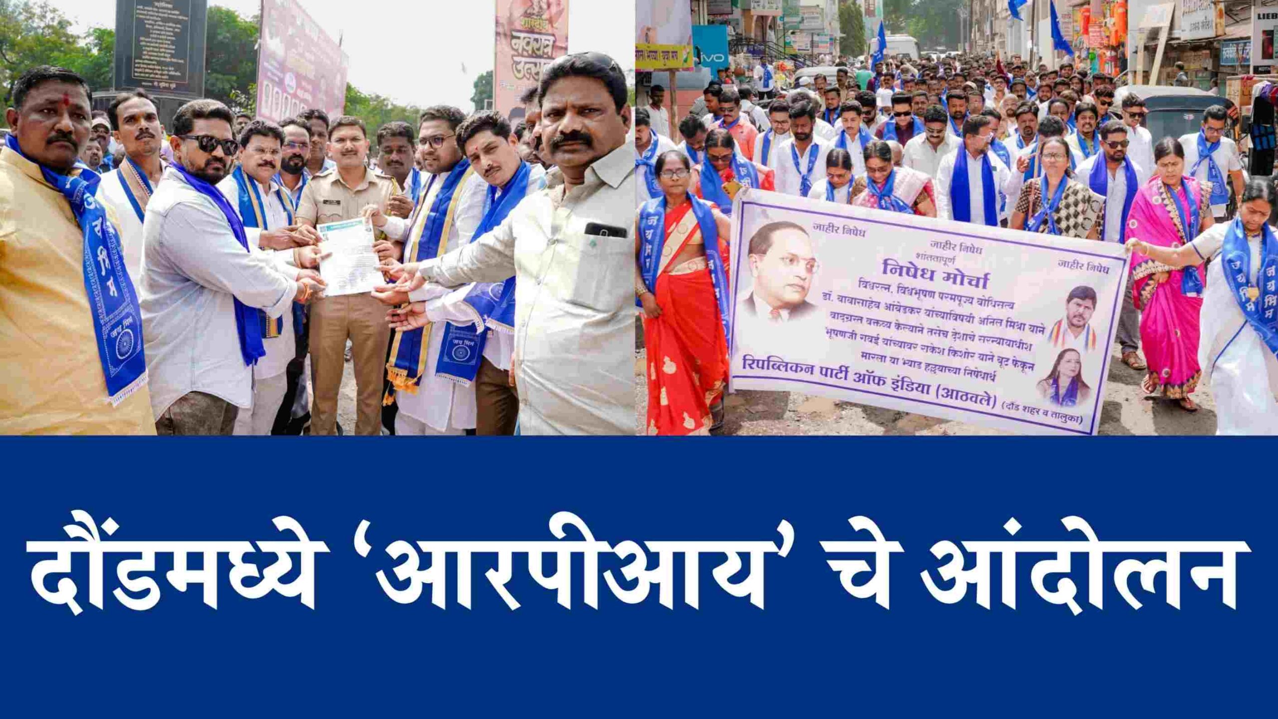 दौंड : विश्वरत्न डॉ बाबासाहेब आंबेडकर यांच्या विषयी अनिल मिश्रा याने वादग्रस्त वक्तव्य केले तसेच देशाचे सर न्यायाधीश भूषण गवई यांच्यावर वकील राकेश किशोर याने बूट फेकून मारला या दोन्ही संतापजनक घटनेचा दौंड शहर व तालुका रिपब्लिकन पार्टी ऑफ इंडिया (आठवले) पक्षाच्या वतीने निषेध नोंदविण्यात आला. दोन्ही घटनांच्या निषेधार्थ पक्षाच्या वतीने शहरातून मोर्चा काढण्यात आला व शहरातील संविधान स्तंभ परिसरात मोर्चाची सांगता करण्यात आली.