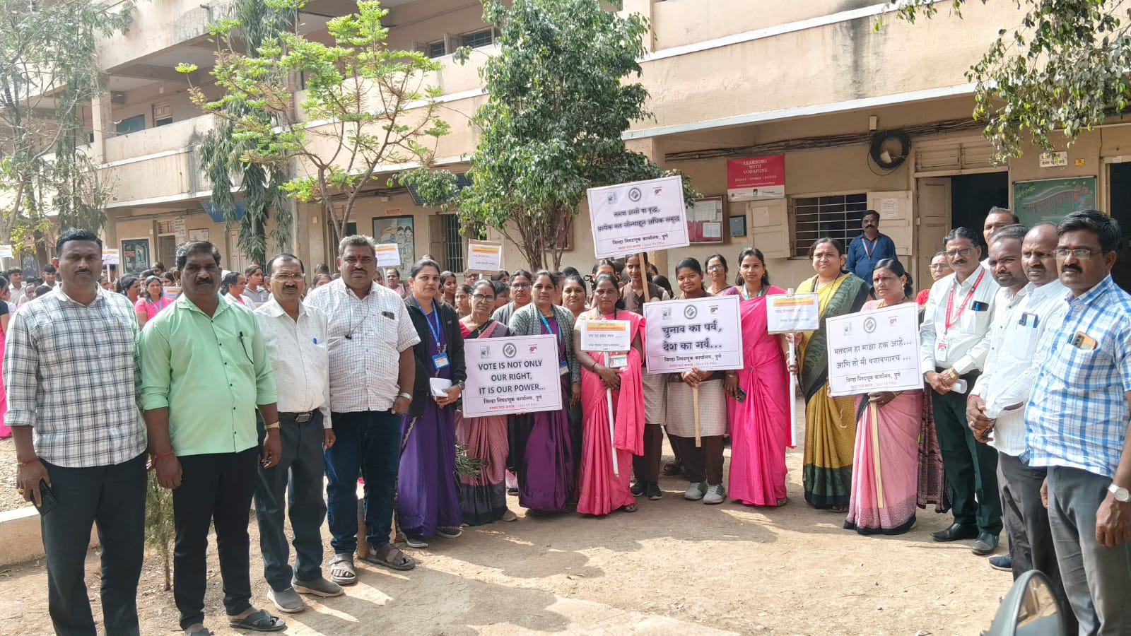 केडगाव प्राथमिक आरोग्य केंद्र, आशा सेविका आणि महाविद्यालयातील शिक्षकांकडून मतदान जनजागृती मोहीम
